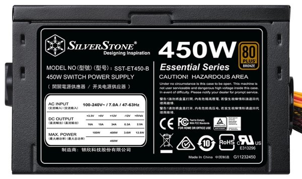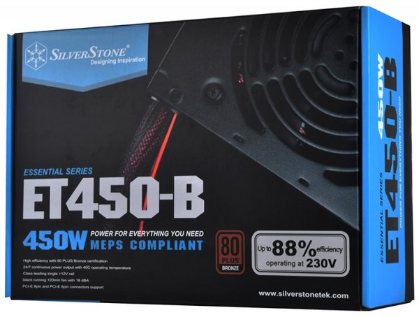 Компания SilverStone известна своими корпусами и блоками питания верхнего ценового сегмента. Тем не менее время от времени тайваньский производитель выпускает и недорогие источники питания, многие из которых становятся частью серии Essential. Так, в начале сентября в данное семейство были включены модели ST50F-ESG, ST60F-ESG и ST70F-ESG с сертификатом 80 PLUS Gold. Впоследствии стратеги SilverStone Technology сочли нужным вывести на рынок ещё более доступное решение — блок питания Essential Series ET450-B с «бронзовым» (80 PLUS Bronze) уровнем энергоэффективности и номиналом 450 Вт. Он предназначен для компьютеров, производительность которых далека от рекордной.