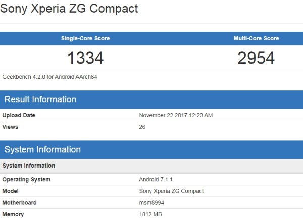 В базе данных бенчмарка Geekbench появилась информация о странном смартфоне Sony, который в тесте фигурирует под обозначением Xperia ZG Compact.