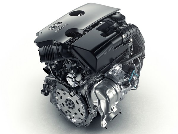 Благодаря многорычажной системе, способной адаптировать высоту хода поршней, новый турбированный четырёхцилиндровый двигатель плавно переключается между коэффициентом сжатия 8:1 и 14:1. Более низкие значения обеспечивают высокую мощность и крутящий момент, а высокий коэффициент сжатия снижает расход топлива. Рабочий объём мотора — около двух литров.