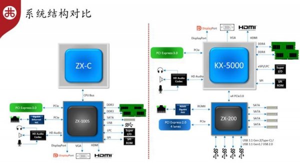 Для расширения списка интерфейсов KX-5000 предусмотрен новый южный мост ZX-200. Чипсет добавит в платформу порты SATA 6 Гбит/с, порты USB, включая USB Type-C (в общем случае USB 3.1) и сетевой порт Gigabit Ethernet. Мост ZX-200, что надо отметить, выпускается с использованием 40-нм техпроцесса, хотя тот же мост для процессоров AMD Ryzen компании ASMedia использует 55-нм техпроцесс. Добавим, новая платформа уже сертифицирована для работы под управлением ряда китайских операционных систем и систем Windows 7 и 10. Ранее на базе процессоров Zhaoxin компания Lenovo представила ноутбук CF03-T, а компания Tsinghua Tongfang Chaoxiang серию десктопов Z8000.