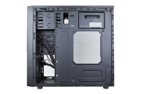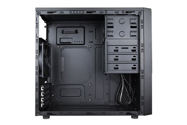 Корпус позволяет задействовать процессорный охладитель высотой до 155 мм. На фронтальную панель выведены гнёзда для наушников и микрофона, по одному порту USB 3.0 и USB 2.0.