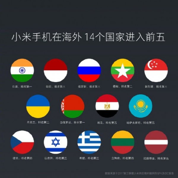 Представители Xiaomi также заявили, что в 14 странах в третьем квартале 2017 года они вошли в топ-5 самых продаваемых марок смартфонов.