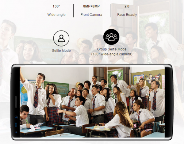 Для любителей фотосъёмки качество камер тоже имеет значение при выборе смартфона. Doogee MIX 2 оснащён четырьмя камерами — тыльными 16- и 13-Мп камерами и двумя 8-Мп фронтальными с широкоугольными объективами, у одной из которых угол обзора составляет 130°.