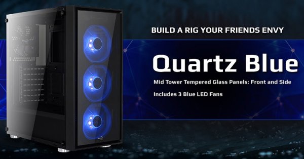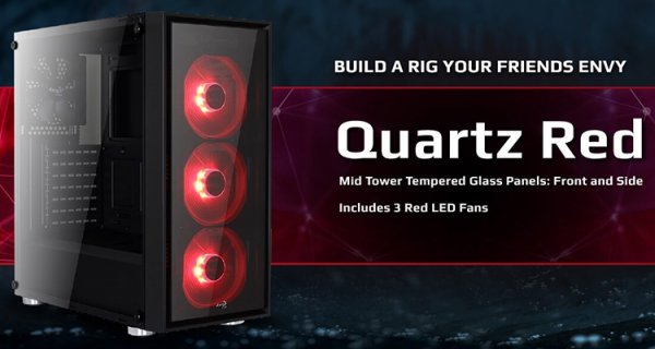 Армия поклонников AeroCool дождалась появления на прилавках (пусть пока и не повсеместно) «младших братьев» Full-Tower корпуса Quartz Pro — Quartz RGB, Quartz Red и Quartz Blue. В отличие от флагмана серии, новинки выполнены в форм-факторе Mid-Tower и ориентированы на экономных покупателей, для которых важен внешний вид корпуса и изначальное наличие в нём нескольких вентиляторов с подсветкой.