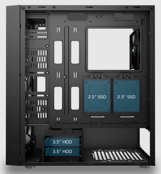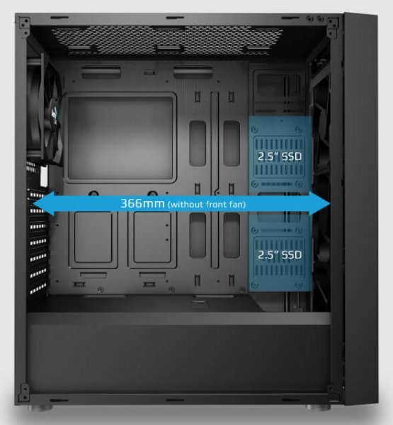Корпуса допускают размещение внутри материнской платы форм-фактора ATX, Micro-ATX или Mini-ITX, семи карт расширения PCI Express длиной до 366 мм (при демонтаже вентилятора), ATX-совместимого блока питания длиной до 180 мм, радиаторов СЖО типоразмеров 240 и 360 мм (сверху и спереди соответственно), процессорного кулера высотой до 152 мм, двух 3,5-дюймовых и четырёх 2,5-дюймовых накопителей.
