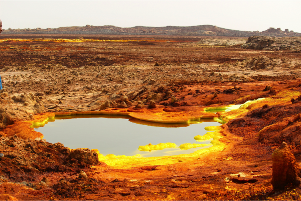 Разогретые лавой пласты пород, почти кипящие горячие ручьи, очень соленые озера и ядовитые испарения делают впадину одним из самых негостеприимных мест на Земле. Но даже здесь есть жизнь. Несколько экосистем микроорганизмов существуют в экстремальных условиях, а исследователи изучают их, чтобы понять, как жизнь может зародиться на других планетах с похожим климатом.