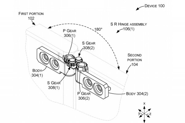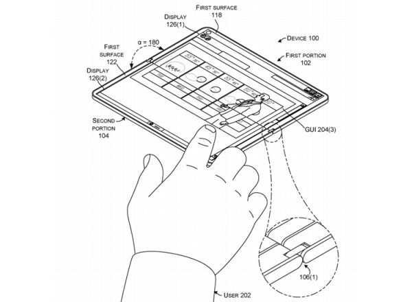Сетевые источники обнаружили патентную документацию корпорации Microsoft на любопытное мобильное устройство со складной конструкцией в стиле ноутбука-трансформера. Как видно на изображениях, гаджет состоит из двух половинок, соединённых друг с другом при помощи особого крепления на основе шестерёнок. Причём на обеих частях корпуса располагаются дисплеи с поддержкой сенсорного управления. Раскрыть устройство можно на любой удобный угол — например, на 180 градусов. В этом случае пользователь получит планшет, у которого большой экран формируется из двух частей — на верхней и нижней панелях корпуса. Изображения говорят о том, что два дисплея устройства позволяют сформировать рабочую поверхность без зазора посередине. Иными словами, экраны формируют единую сенсорную панель. Более того, на иллюстрациях показано, что развернуть половинки корпуса можно более чем на 180 градусов. Это даст возможность реализовать дополнительные режимы использования гаджета. Наблюдатели полагают, что Microsoft может проектировать планшет-раскладушку Surface с двумя дисплеями. Причём интерфейс некоторых программ, показанных на иллюстрациях, указывает на применение «настольной» версии Windows (к примеру, видны стандартные кнопки управления в правом верхнем углу окна приложения). Впрочем, сама Microsoft о возможности создания гаджета с описанной конструкцией ничего не сообщает.