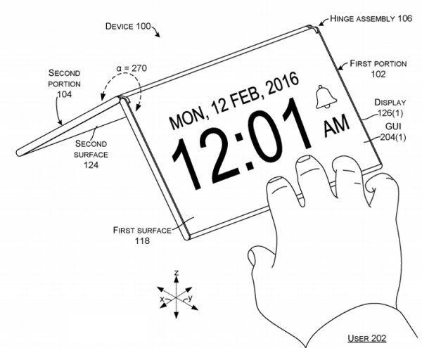 Более того, на иллюстрациях показано, что развернуть половинки корпуса можно более чем на 180 градусов. Это даст возможность реализовать дополнительные режимы использования гаджета.