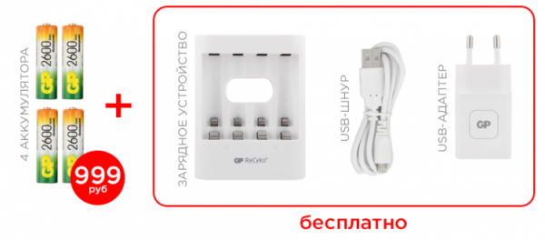Специальная цена на комплект аккумуляторов GP 2600 связана ещё и с завершением Года экологии в России. Многоразовые источники тока оптимальны не только для бюджета, но и для окружающей среды. Обычные батарейки содержат тяжёлые металлы, которые при попадании на свалку могут отравлять почву и воду. Вывод: батарейки — на переработку, а многоразовые аккумуляторы GP — на долгую, верную службу вашим друзьям и близким!