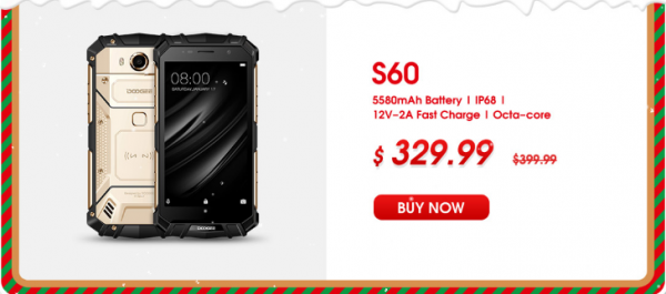 Если MIX2 является фаворитом для любителей игр, то смартфон S60 придётся по душе любителям активного времяпровождения на природе. Помимо соответствия требованиям стандарта IP68 по водо- и пыленепроницаемости, а также ударопрочности, характеристики S60 вполне соответствуют акционной цене в размере $329,99. Оснащённый аккумулятором ёмкостью 5580 мА·ч «неубиваемый» смартфон базируется на восьмиядерном процессоре с 6 Гбайт оперативной памяти, отличаясь продолжительным временем автономной работы и высокой энергоэффективностью. Кроме того, технология быстрой зарядки (12 В/2 А) позволяет значительно сократить время подзарядки смартфона, что удобно во время отдыха на открытом воздухе.