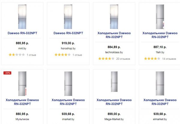 Например, холодильник Daewoo RN-332NPT вместо 939 рублей можно купить за 839 рублей. Другие продавцы за эту модель просят минимум на 30?40 рублей больше.