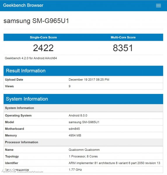 Недавно в базе популярного синтетического теста GeekBench появились результаты Galaxy S9+ с процессором Snapdragon. В одноядерном режиме результат составит 2422 баллов, в многоядерном — 8351 баллов. Показатели предыдущих смартфонов Samsung ранее не превышали уровня в 2000 и 6500 очков.
