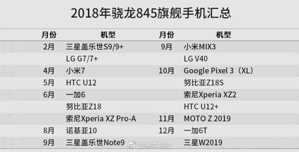 В Интернете опубликован список смартфонов с флагманским мобильным процессором Snapdragon 845, которые будут анонсированы различными компаниями в течение следующего года. Напомним, что чип Snapdragon 845 был официально представлен компанией Qualcomm Technologies в начале текущего месяца. Изделие содержит восемь вычислительных ядер Kryo 385: четыре из них функционируют с тактовой частотой до 2,8 ГГц, ещё четыре — до 1,8 ГГц. Обработкой графики занят высокопроизводительный контроллер Adreno 630. Процессор обеспечивает поддержку беспроводной связи Wi-Fi 802.11ac 2x2 MU-MIMO и Wi-Fi 802.11ad, а также Bluetooth 5. Встроенный сотовый модем Snapdragon X20 LTE теоретически позволяет загружать данные через мобильную сеть со скоростью до 1,2 Гбит/с. Ранее уже сообщалось, что платформу Snapdragon 845 намерены применять в своих аппаратах такие компании, как LG, Samsung, Sony и Xiaomi. Теперь появились более детальные сведения. Итак, чип Snapdragon 845 станет основой некоторых версий аппаратов Samsung Galaxy S9/S9 и Note9, а также смартфона-раскладушки Samsung W2019. Компания LG намерена задействовать этот процессор в смартфонах G7, G7 и V40. Платформа Snapdragon 845 ляжет в основу аппаратов HTC U12 и U12 , а также Sony Xperia XZ Pro-A. Компания Xiaomi выбрала названный чип для моделей Mi Mix 3 и Mi7. Наконец, процессор найдёт применение в смартфонах ZTE Nubia Z18s, OnePlus 6 и 6T, Google Pixel 3 XL, а также Moto Z 2019.