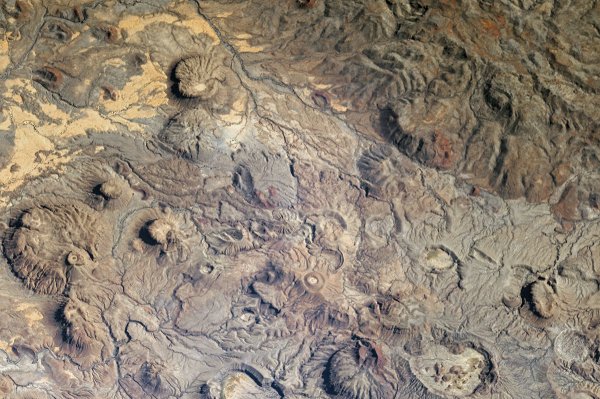 Вулканическое поле вулкана Мейдоб в Судане. В последний раз этот вулкан извергался около 5000 лет назад. Вулканическое поле занимает несколько тысяч квадратных километров и содержит почти 700 вентиляционных отверстий, возраст которых оценивают минимум в 6 миллионов лет.