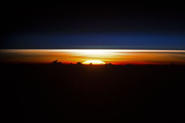 Восход солнца над Филиппинским морем. Астронавты видят шестнадцать восходов каждые 24 часа. Этот снимок сделали, когда МКС была расположена над побережьем Вьетнама.