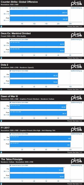 Таким образом, в самых разных играх для Linux, использующих API Vulkan и OpenGL, не наблюдается сколько-нибудь заметного падения частоты кадров в результате использования ядра с обходом уязвимости чипов Intel. Как и в случае с рядом других пользовательских приложений вроде FFmpeg. В то же время ряд синтетических тестовых пакетов или специфические задачи вроде СУБД страдают порой весьма серьёзно. Похоже, рядовым пользователям беспокоиться особенно не о чем, тогда как владельцев облачных серверов на базе чипов Intel проблема, возможно, серьёзно затронет.