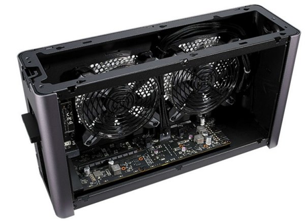 Устройство оснащено портом Thunderbolt 3, который обеспечивает пропускную способность до 40 Гбит/с. Внутри достаточно места для размещения видеокарты в 2,5-слотовом исполнении.