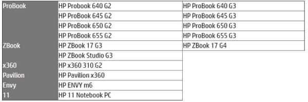 Бракованные аккумуляторы поставлялись с ноутбуками HP ProBook (серии 64x G2 и G3, серии 65x G2 и G3), HP x360 310 G2, HP ENVY m6, HP Pavilion x360, ноутбуками HP 11 и мобильными рабочими станциями HP ZBook (17 G3, 17 G4 и Studio G3), проданными по всему миру с декабря 2015 года по декабрь 2017 года.