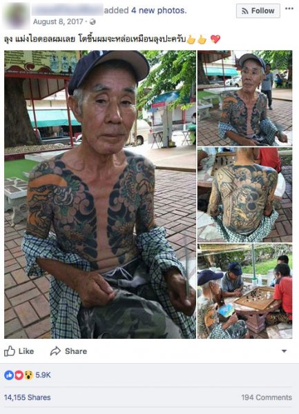 74-летнего Синехару Шираи задержали после 14 лет розыска. Подсказку полиции дал вирусный пост в Facebook с фотографией его татуировок. Об этом сообщает издание Coconuts Bangkok.