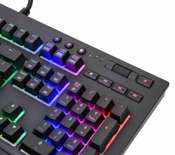 Клавиатура оборудована гибко настраиваемой RGB-подсветкой с поддержкой 16,8 млн цветовых оттенков. Доступны различные эффекты и пять уровней яркости. Более того, предусмотрены специальные профили (FPS1, FPS2, MMO, MOBA, RTS) для подсветки определённых клавиш в зависимости от жанра игры. Управлять подсветкой можно через мобильное приложение (для смартфонов и планшетов) с поддержкой голосовых команд.