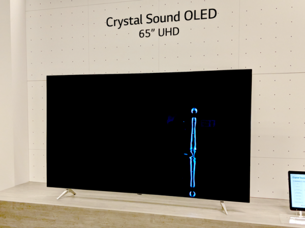 Компания LG продемонстрировала на выставке CES 2018 телевизоры Crystal Sound OLED TV, в которых нет традиционных динамиков. Для воспроизведения звука в качестве мембраны в них используется панель OLED. За панелью находятся устройства возбуждения колебаний, которые обеспечивают воспроизведение звука путём вибрирования дисплея. Таким образом, обеспечивается более качественный, лучше направленный звук, чем в обычных телевизорах. Как правило, динамики в телевизорах направлены вниз, то есть они посылают звуки в пол.