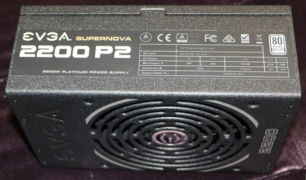 При температуре окружения до 50 °C источник питания SuperNova 2200 P2 способен выдавать до 183,3 А/2199,6 Вт по линии +12 В и до 120 Вт по линиям +3,3 В и +5 В, а также суммарно 2200 Вт в постоянном режиме. Вне серверной инфраструктуры блоки питания такого номинала не встречаются, и EVGA SuperNova 2200 P2 претендует на то, чтобы отобрать звание самого мощного БП для настольных ПК (а также оверклокерских стендов и криптовалютных «ферм») у Super Flower Leadex Platinum 8Pack 2000W.