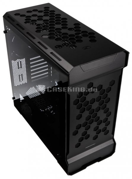 Новинка привлекает внимание отверстиями в виде пчелиных сот в лицевой и верхней панелях. Чтобы внутрь корпуса не попадала пыль, за «сотами» находятся сетчатые фильтры. Полагаем, что модифицированная таким образом конструкция обеспечит более низкую температуру комплектующих (в частности процессора и видеокарты) по сравнению с Enthoo Evolv ATX и Enthoo Evolv ATX Glass.