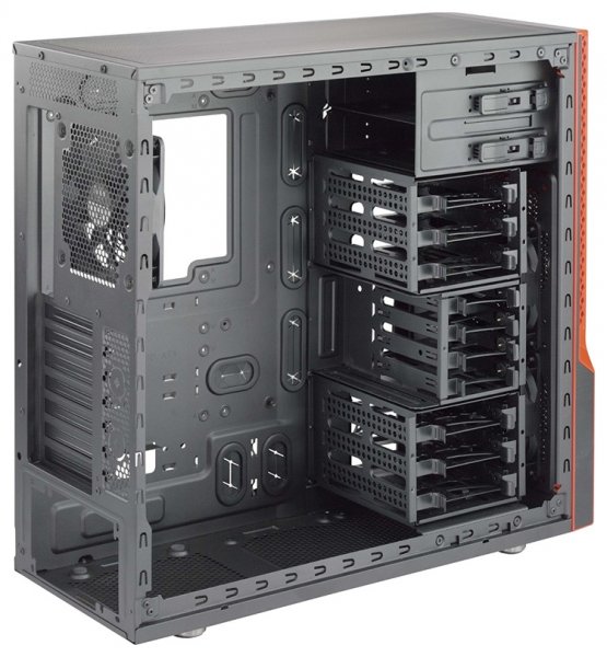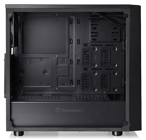 Если по отношению к корпусам Supermicro напрашивается приставка «ретро-», то новый продукт Thermaltake Versa J21 TG вполне соответствует духу времени. В данном корпусе используется панель из тонированного закалённого стекла, предусмотрен кожух в нижней части (над посадочными местами для БП и накопителей), отсутствуют 5,25-дюймовые отсеки, а количество посадочных мест для 2,5-дюймовых SSD/HDD (6 шт.) превышает количество 3,5-дюймовых отсеков (2 шт.). Также отметим, что в Versa J21 TG отсутствуют препятствия для монтажа крупногабаритных видеокарт. Высота процессорного кулера может достигать 160 мм.