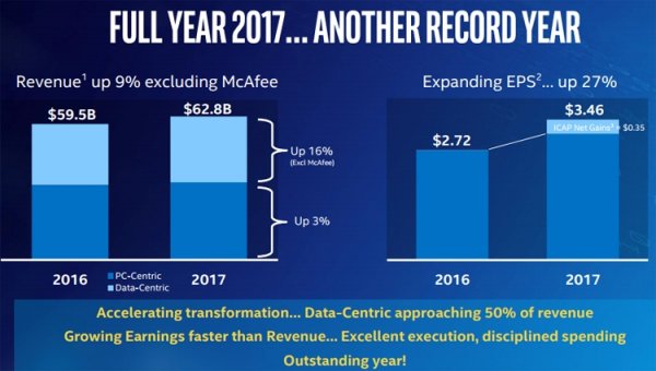 Корпорация Intel отрапортовала о работе в последней четверти и 2017 финансовом году в целом: продемонстрированные показатели бьют рекорды.