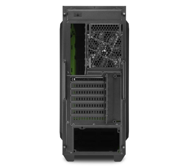 Помимо тыльного вентилятора, изначально предусмотрен 120-мм вентилятор спереди. Можно также установить дополнительные кулеры вверху по схеме 3 ? 120 мм или 2 ? 140 мм, а также задействовать радиатор жидкостной системы охлаждения. На фронтальной панели можно обнаружить гнёзда для наушников и микрофона, два порта USB 3.0.
