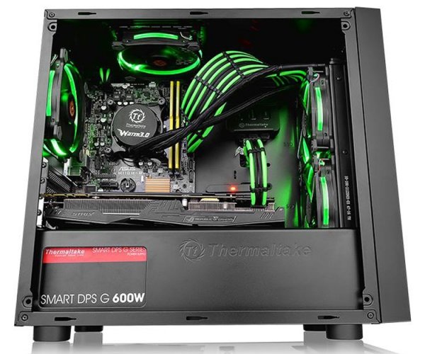 Многие экспонаты недавней выставки CES 2018 уже получили статус серийных продуктов, и корпус Versa H17 от компании Thermaltake не стал в этом плане исключением. Новинка является одним из самых доступных в ценовом плане предложений тайваньского производителя и при этом подходит для сборки мощных игровых ПК и рабочих станций. Помимо основной версии Thermaltake Versa H17 (артикул CA-1J1-00S1NN-00), в продажу также поступит модель с акриловым окном в боковой панели — Versa H17 Window (CA-1J1-00S1WN-00). Масса обоих вариантов корпуса приблизительно одинакова и равна 4,5 кг. Габариты скромнее, чем у средних Mid-Tower — особенно это касается длины и высоты конструкции, которые составляют 380 и 390 мм соответственно. По ширине Versa H17/H17 Window не уступает многим бюджетным Mid-Tower корпусам (205 мм), хотя пространство для процессорного кулера всё-таки ограничено 155 миллиметрами. Продукт преимущественно изготовлен из стали класса SPCC. Её толщина вряд ли превышает 0,6 мм. По бокам лицевой панели и на верхней находятся сетчатые вставки. Несмотря на их наличие, корпус выглядит «душноватым». На панели ввода-вывода размещены гнёзда для микрофона и наушников, кнопки Reset и Power, два разъёма USB 2.0 и единичный USB 3.0. Внутреннее пространство корпуса разделено на два отсека. В верхней части могут находиться материнская плата форм-фактора Micro-ATX или Mini-ITX, пара двухслотовых видеокарт длиной до 350 мм, два 2,5-дюймовых накопителя и крупногабаритные узлы системы жидкостного охлаждения — в том числе радиаторы типоразмеров 120 и 240–280 мм. Для вентиляторов со 120- и 140-мм крыльчаткой места также предостаточно, их может быть суммарно до пяти штук. Впрочем, в комплект поставки включён только один «карлсон» — 120-миллиметровый (скорость вращения 1000 об/мин, уровень шума 16 дБА). Пространство под кожухом, украшенным логотипом Thermaltake, предназначено для ATX-совместимого блока питания длиной до 220 мм и двух 3,5-дюймовых жёстких дисков. Продажи версии нового корпуса без окна в боковой панели уже начались, правда, не повсеместно. Versa H17 появился в прайс-листах некоторых американских и австралийских интернет-магазинов — цены начинаются с $44,99. Модель с акриловой вставкой будет стоить ориентировочно $55–65, без учёта налогов.