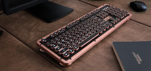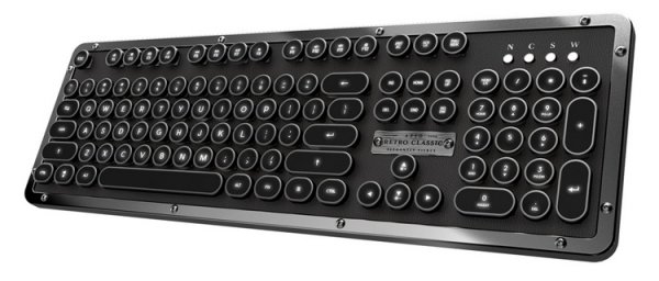 В продажу поступила оригинальная клавиатура AZIO Retro Classic BT, подходящая для использования с компьютерами под управлением операционных систем Windows и macOS. Главная особенность устройства — исполнение в ретро-стиле. Клавиатура стилизована под старинную пишущую машинку: она наделена круглыми и овальными клавишами с окантовкой. В модели Retro Classic BT применены механические переключатели AZIO Typelit Mechanical Switch (Kailh). При этом предусмотрены несколько вариантов исполнения клавиатуры. Для подключения к компьютеру служит беспроводное соединение Bluetooth. Питание обеспечивает аккумуляторная батарея ёмкостью 6000 мА·ч. Утверждается, что на одной подзарядке новинка может функционировать более года с выключенной подсветкой и один–два месяца со включенной (в зависимости от интенсивности подсветки). Подзарядка осуществляется через порт USB Type-C. Так что использовать клавиатуру можно и в проводном режиме. Габариты составляют 455 ? 147 ? 40 мм, вес — 1587 граммов. Правда, за оригинальность исполнения и поддержку Bluetooth придётся довольно много заплатить: клавиатура предлагается по цене 220 долларов США.