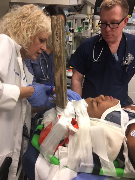 Нужно было удалить шуруп, однако доска, которую он держал, тоже доставила немало беспокойства. Она оказалась настолько длинной, что пациента сперва не получилось уложить в реанимобиль. После доску укоротили и отвезли мальчика в местную больницу. Затем — в госпиталь Джонса Хопкинса на вертолете полицейских.