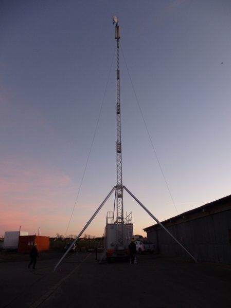 Основным элементом передвижной базовой станции выступает мачта связи, которая с помощью электропривода раскладывается и поднимается на высоту до 30 метров.