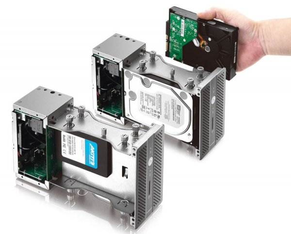 Хранилище оборудовано двумя накопителями Seagate Iron Wolf Pro вместимостью 2 Тбайт каждый. При этом возможно использование устройства в конфигурации RAID 0 или RAID 1.