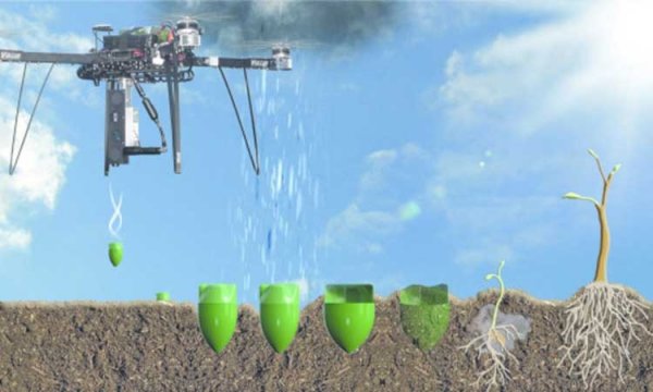 Британская компания BioCarbon Engineering совместно с известным производителем беспилотных летательных аппаратов Parrot предлагает решить эту проблему с помощью дронов.