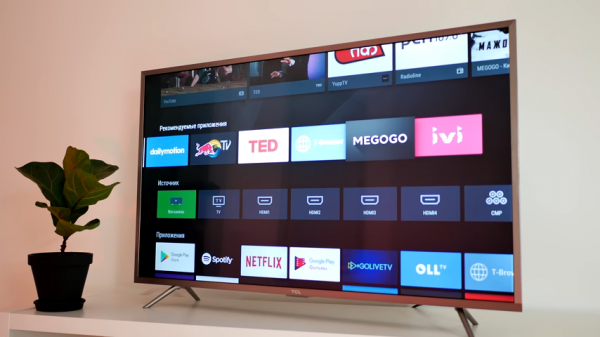 Кроме того, телевизор оснащается встроенной Smart TV-системой на базе операционной системы Android и полным комплектом выходов для подключения внешних устройств (например игровых приставок).