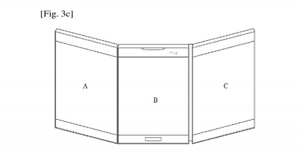 При необходимости же владелец сможет раскрыть смартфон, получив доступ к дополнительным секциям дисплея. На этих экранах могут отображаться вспомогательные данные или, скажем, окна нескольких работающих одновременно приложений. Кроме того, все три секции теоретически смогут функционировать как единый экран.