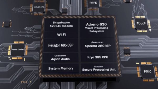 8 фирменных вычислительных ядер Kryo 385 (4 высокопроизводительных и 4 энергоэффективных, построенных на базе Cortex-A75 и Cortex-A55);