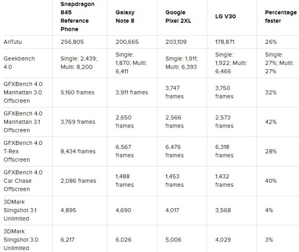 Результаты проверки SoC не стали сюрпризом: Snapdragon 845 демонстрирует возросшую на 25–30 % производительность процессора, а при обработке графики новинка опережает Snapdragon 835 почти на 30–35 %.