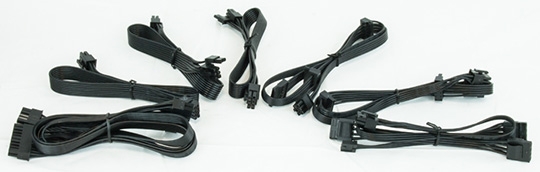Любопытно, что наборы силовых кабелей и разъёмов у моделей Compact Series CSN-550C и CSN-650C полностью совпадают: доступны единичные разъёмы ATX, (4+4)-контактный EPS12V и FDD Power, пара (6+2)-контактных PCI-E Power, три 4-контактных Molex и шесть SATA Power. По линии +12 В старший блок выдерживает нагрузку в 54 А/648 Вт, а младший — 45,8 А/549,6 Вт. В свою очередь, суммарная нагрузка по линиям +3,3 В и +5 В не должна превышать 90 Вт.