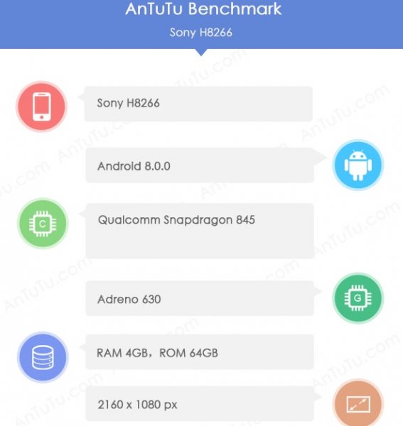 Sony Xperia XZ2, вероятно, будет оснащаться дисплеем с соотношением сторон 18:9 (разрешение 2160 на 1080 пикселей), процессором Snapdragon 845 и 4 ГБ оперативной памяти. Объем встроенного хранилища — 64 ГБ.
