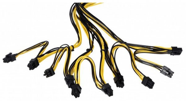 Версии блоков питания с суффиксом «BTC» оснащены только десятью 6-контактными кабелями PCI-E Power. В свою очередь, у моделей с суффиксом «ETH» сочетания кабелей и разъёмов иные: