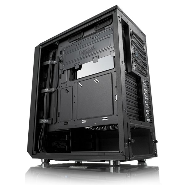 Допускается установка материнской платы формата АТХ, Micro-ATX или Mini-ITX. Внутри есть место для двух накопителей в форм-факторе 3,5/2,5 дюйма и ещё трёх 2,5-дюймовых накопителей. Предусмотрены крепкие стальные корзины приводов с амортизирующими резиновыми втулками для тихой и надёжной работы.