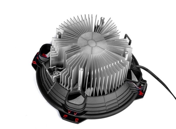 Решение имеет габариты 130 ? 130 ? 63 мм. В состав кулера входят цилиндрический алюминиевый радиатор и вентилятор диаметром 120 мм. Скорость вращения последнего достигает 1600 оборотов в минуту; уровень шума не превышает 26,4 дБА.