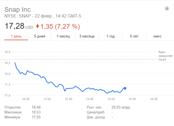 После этого цена на акции материнской компании сервиса Snap упала более чем на 7%, она потеряла 1,5 миллиарда долларов своей рыночной стоимости.