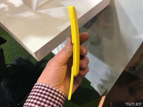 Как и год назад, перед нами гаджет для привлечения внимания. Согласитесь, что в 2018 году вы вряд ли будете покупать обычный телефон, пусть и с поддержкой 4G. Зато хайп точно обеспечен. Интересно, что компания принесла на свой стенд бананы — как напоминание о неофициальном названии устройства.
