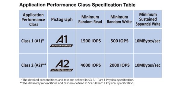 Новинка соответствует стандарту Application Performance Class 2 (А2). Это означает, что карта может применяться для расширения встроенной памяти Android-устройств. Показатель IOPS (операций ввода/вывода в секунду) при чтении гарантированно составляет не менее 4000, при записи — не менее 2000. Изделие оптимизировано для работы с мультимедийными материалами и приложениями.
