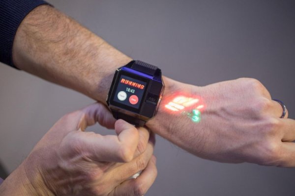 Компания Haier продемонстрировала на выставке MWC 2018 смарт-часы Asu, оснащённые встроенным проектором. Идея заключается в том, чтобы существенно увеличить возможности 1,54-дюймового дисплея с разрешением 240 ? 240 точек благодаря проекции изображения с разрешением 854 ? 480 точек непосредственно на экран пользователя, например, на поверхность руки. Затем вы сможете взаимодействовать с проецируемым изображением с помощью прикосновения.
