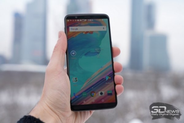 Так же, как у флагмана компании Apple, в верхней части экрана OnePlus 6 имеется вырез, которого вполне достаточно для размещения динамика и камеры для селфи. Также следует отметить, что на экране смартфона указана версия операционной системы Android 8.1 Oreo с OxygenOS 5.1.0, которая пока недоступна для нынешней модели OnePlus 5T.